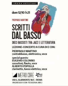Scritti dal Basso. Dieci bassisti tra jazz e letteratura è un libro di Pierpaolo Martino appena pubblicato da Shake Edizioni, in cui l’autore racconta il contrabbasso e il basso elettrico dal punto di vista di dieci tra i bassisti più influenti della storia del jazz. Il libro tesse una storia del contrabbasso e del basso elettrico in ambito jazz e avant, in cui il basso viene letto e scritto attraverso diverse prospettive e pensato in termini necessariamente intermediali (a partire dalla vicenda del grande Charles Mingus) con un focus specifico sul rapporto di ciascuno di essi con la letteratura, sia in quanto lettori, che autori/scrittori; ossia l’aver composto delle opere di omaggio o in collaborazione con alcuni scrittori (è il caso di Steve Swallow, Bruno Chevillon, Dave Holland, Charlie Haden, Guy, Dresser,) o l’aver composto brani o album che sanno di letteratura (come nel caso di Pastorius, Weber e Gary Peacock). Ogni capitolo mette in questo senso in rapporto specifiche composizioni di ciascun bassista con opere di scrittori quali Oscar Wilde, Thomas Hardy, James Joyce, Virginia Woolf, Samuel Beckett, Pier Paolo Pasolini, Kamau Brathwaite, Robert Creeley, Paul Auster e Yvone Vera.